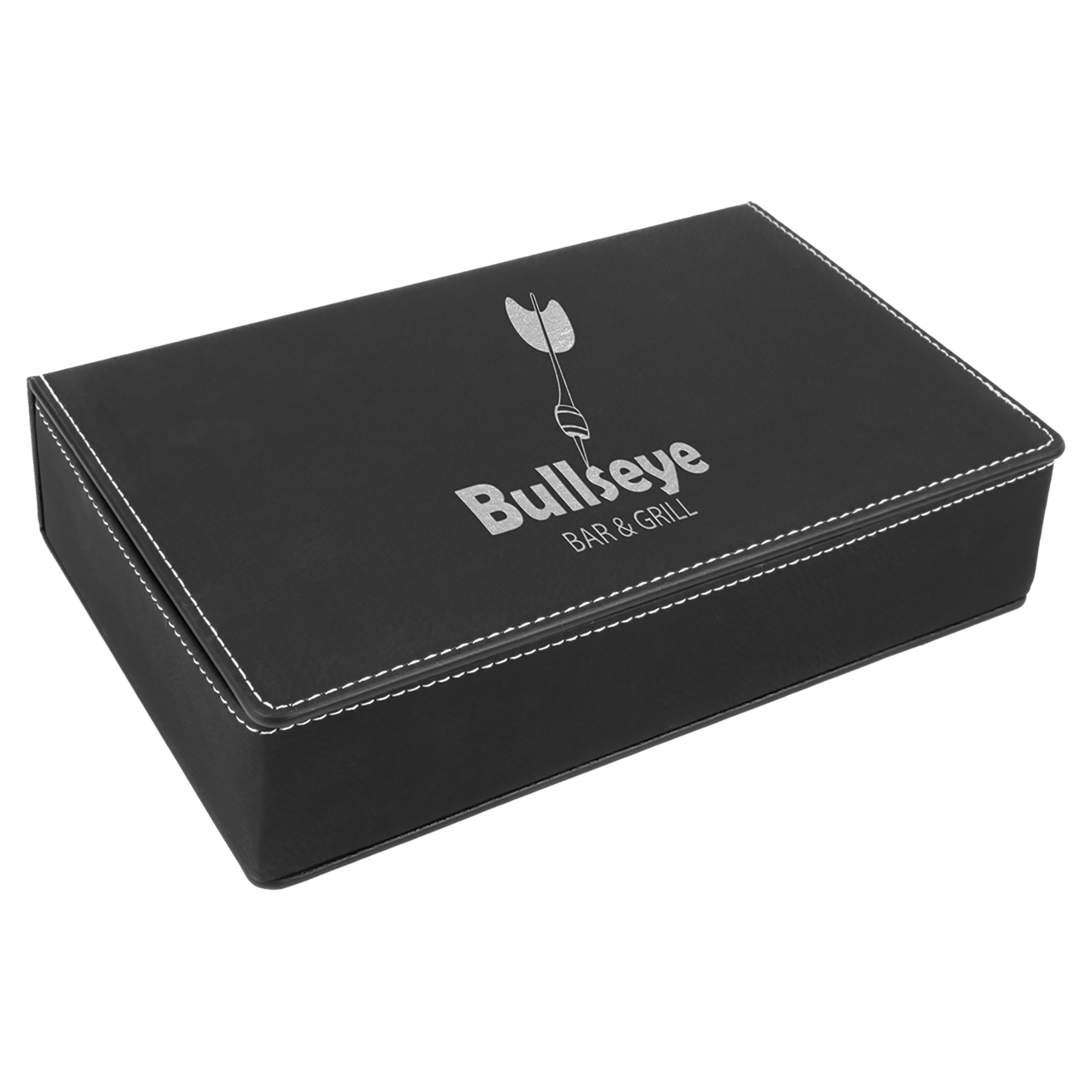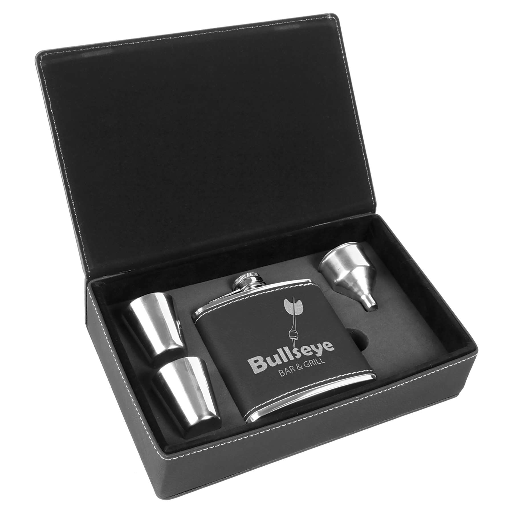Custom Flask Gift Set - Leather - Black with Silver Engraving