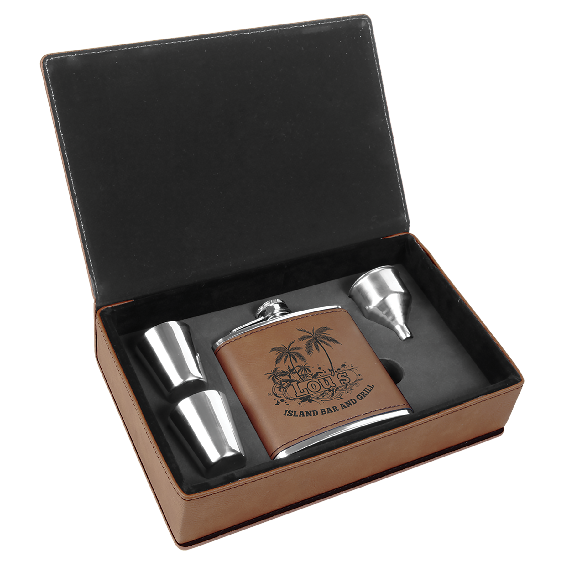 Custom Flask Gift Set - Leather - Dark Brown