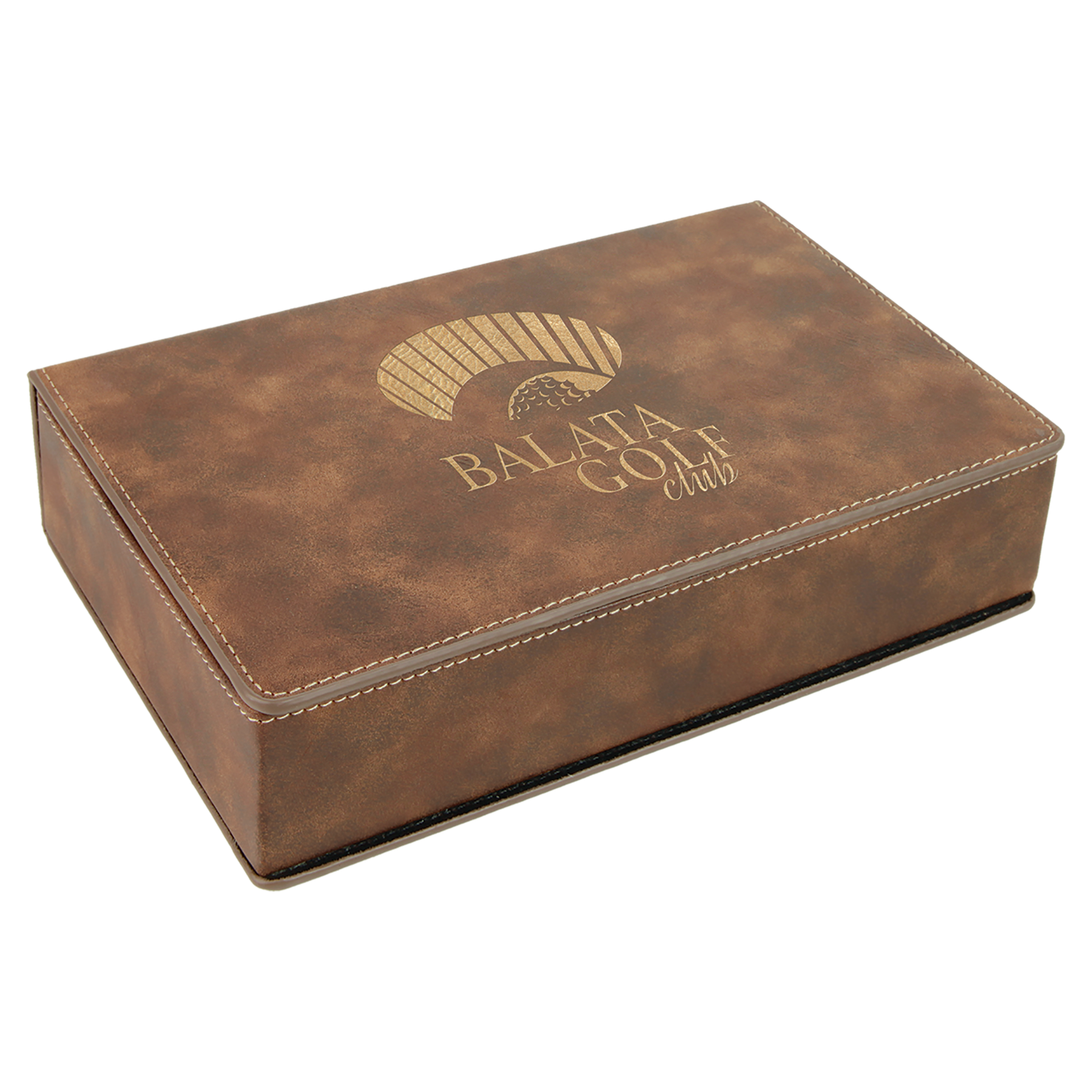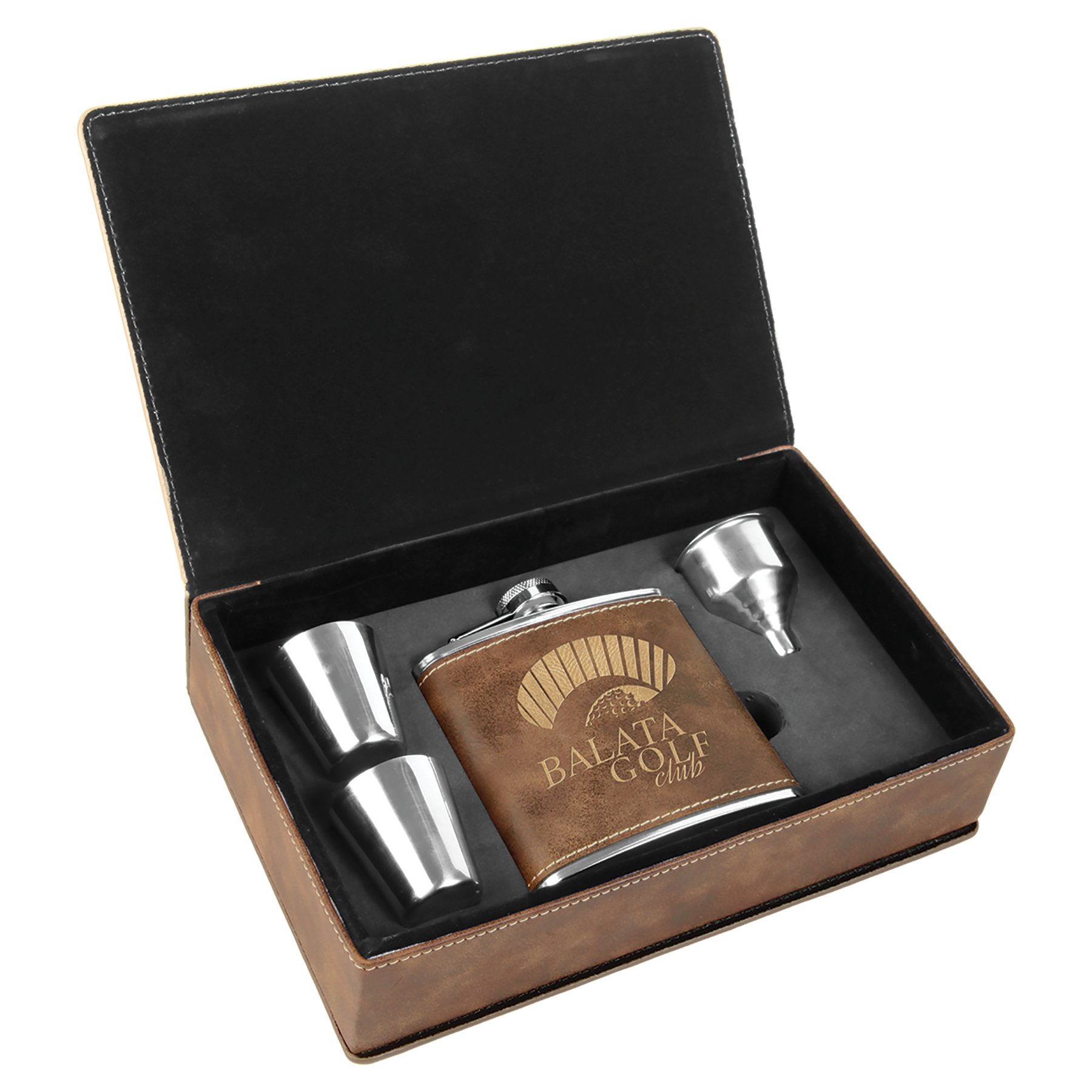 Custom Flask Gift Set - Leather - Rustic with Gold Engraving