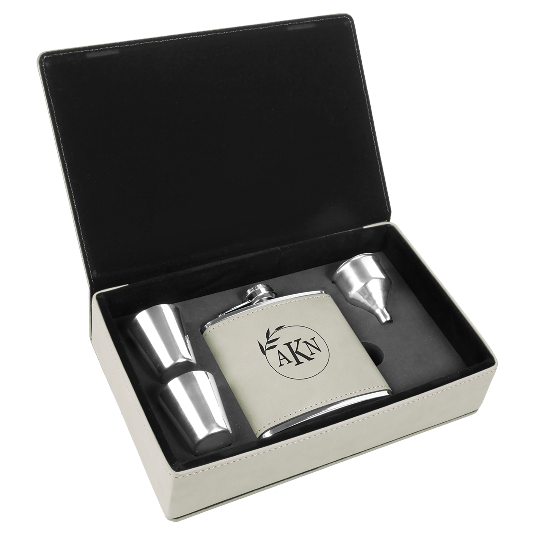 Decrease quantity for Custom Flask Gift Set - Leather - White